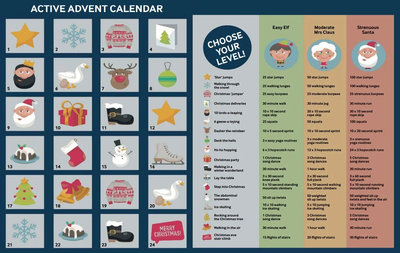 You can also try a fun advent-style activity calendar. This intervention comes in varying levels of intensity: Easy Elf, Moderate Mrs. Claus, and Strenuous Santa!